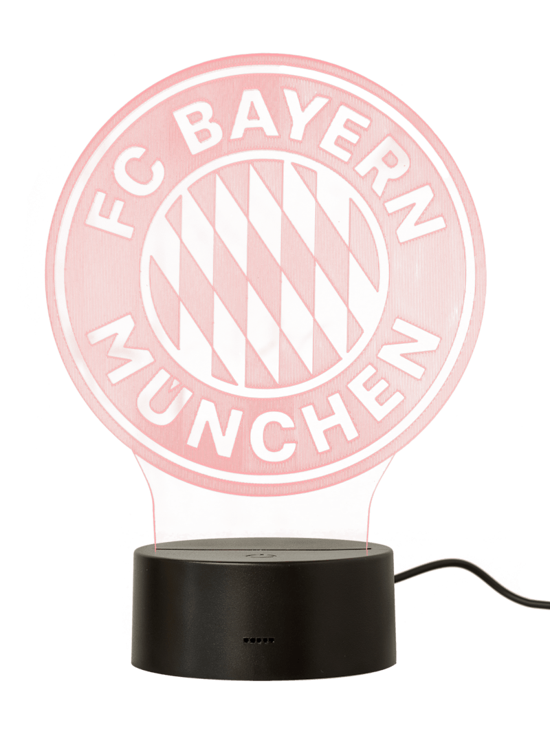 LED-Logo in Rot überzeugt durch seine Details & ist das Highlight für treue FC Bayern München Fans.