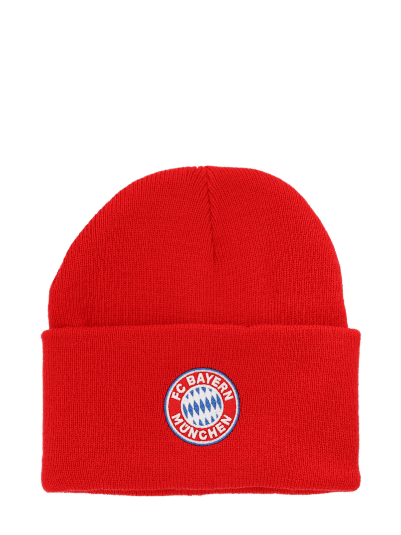 Strickmütze Logo in Rot überzeugt durch seine Details & ist das Highlight für treue FC Bayern München Fans.
