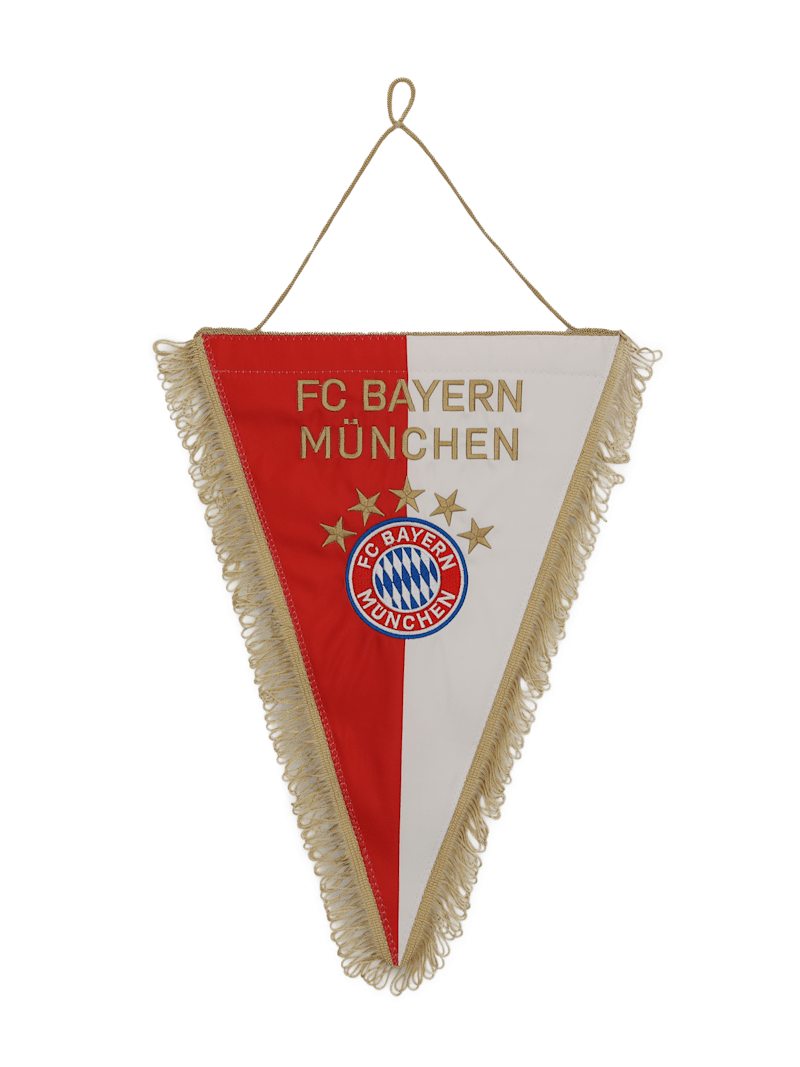 Wimpel in Rot/Weiß überzeugt durch seine Details & ist das Highlight für treue FC Bayern München Fans.
